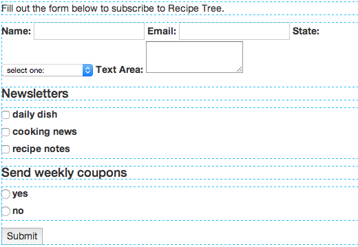 Ready to design a form of your own? Download the forms folder from the Course Downloads area and open the index.html file. Toggle to Live View and select the "Fill out the form below to subscribe to Recipe Tree" heading.