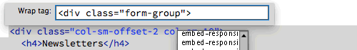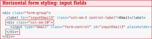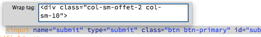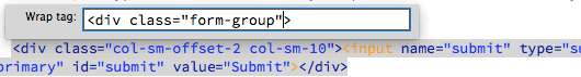 Again, select the "col-sm-offset-2 col-sm-10" div that you just inserted, and wrap it in another div with a class of "form-group".