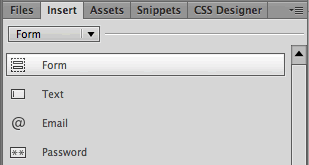 The form will be inserted after this heading. Expand the Insert panel and choose the Form category. Click "Form" and choose "After" from the insert options.