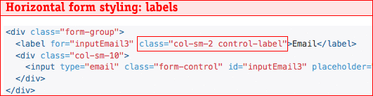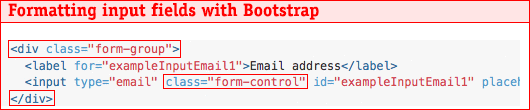 It isn't easy to style forms. Labels and input fields don't line up on their own. Luckily, Bootstrap provides a library of CSS styles for form elements. Head to http://getbootstrap.com/ to study the basic form example.