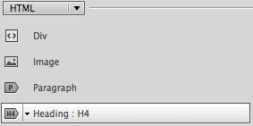Toggle to the HTML category, and click "Heading: H4". Choose "Before" from the insert options.