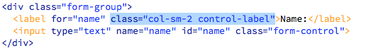Add a class of "col-sm-2 control-label" to the name label, the email label, the state label, and the comments label.