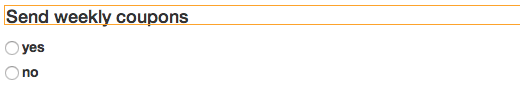 Select the "Send weekly coupons" heading and both radio buttons and wrap them in a div with a class of "col-sm-offset-2 col-sm-10".