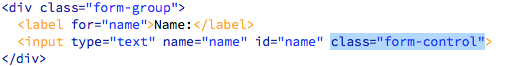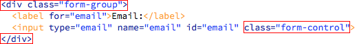 Apply the same formatting to the other input fields. Select the email label and input, wrap them in a div with a class of "form-group", then apply the "form-control" class to the input field.