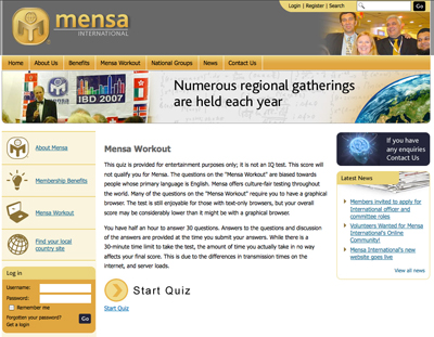 When a user takes the Mensa Workout test, test answers are submitted to the Mensa Web server where scores are calculated. Results are instantly returned to the user (displayed in the browser) and may also be kept in a database on the server. All of this is achieved through the form handler. |