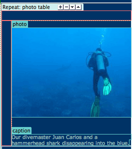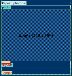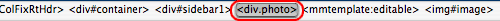 4. One more region—the caption under the photo. Select the small line of text that reads "caption", then click the <p> tag in the Tag selector to make sure you've selected the entire paragraph. Choose Insert > Template Objects > Editable Region.