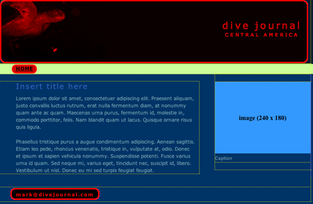 The global elements are highlighted in red—these elements will appear on every page of the site. |