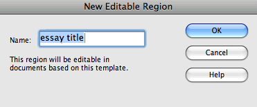 Name this template "essay" (lowercase letters, no spaces). Dreamweaver will add the extension.