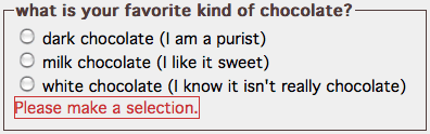 The Validation Radio Group widget requires that the user make a selection from a group of radio buttons