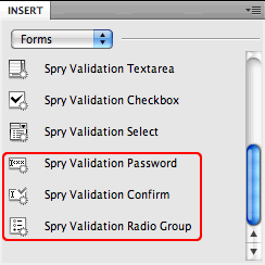 Dreamweaver CS4 users have three additional Spry validation widgets:
