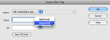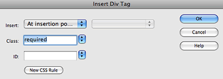 Objects > Div Tag. Give the div a class of "required" and click OK.