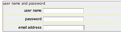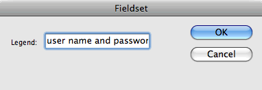 Click inside the "user name and password" fieldset. Go to Insert > Layout