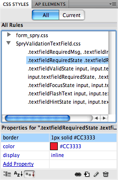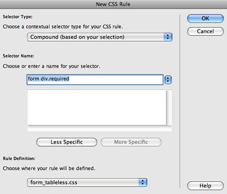 the Selector Name field. This rule will apply to any div with a class of "required"