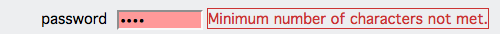 The Validation Password widget enforces rules for passwords. For example, you could require all passwords to contain a minimum of five characters. If your user enters four characters, he or she will get an error: