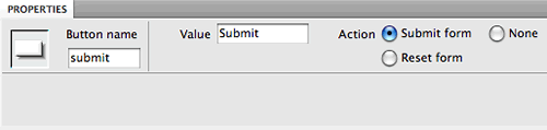 The most important feature of a button is its action. You can't re-label a Reset button with the name "Submit" and expect it to submit the form. You must choose the correct action using the radio buttons in the Property inspector. Let's examine each action: