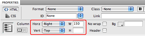 in the Property inspector.