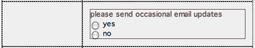 (or Insert > Form > Fieldset) to insert a new fieldset. Enter "please send occasional email updates" as the fieldset legend.