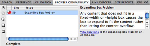 Dreamweaver will identify any potential issue—and what browser it affects. |
