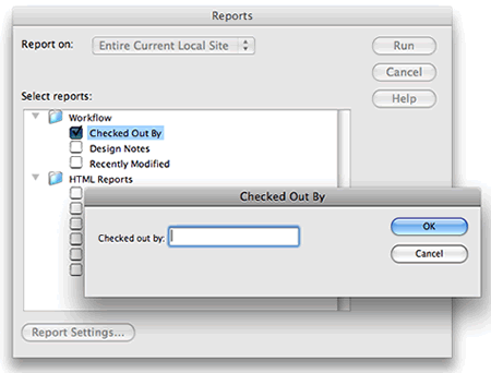 Choose Design Notes to run a report listing all Design Notes for selected documents or for the entire site. What are Design Notes, you might ask? Let's say you finish up a revision to the home page of your latest Web site project, and you post the changes for review by your Art Director. You would go to File > Design Notes to add information on the status of the document (revision), what changes were made (new color scheme), how the design decision was reached (client feedback), and what needs to be done now (waiting for illustration artwork). Very helpful information that I'm sure your Art Director will appreciate.
