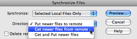 It goes both ways—get newer files from the remote server or post newer files from your local computer. Either way, you'll be working on the latest version. |