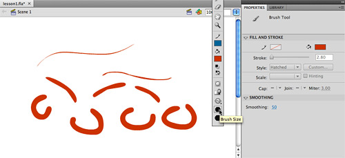 the Library, and the Properties panels. Later we will go into more