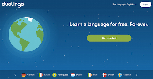 The Duolingo website uses a more unconventional horizontal navigation scheme. Rather than placing a menu at the top of the page, the navigation menu is at the bottom of the browser window, below a minimal home screen.