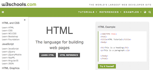 W3Schools takes advantage of both horizontal and vertical navigation menus. There's a simple, dropdown horizontal menu featured at the top of the page, aligned to the right. There's also a vertical navigation menu featured in the left sidebar. It's hard to say which is the primary and which is the secondary menu here. They both seem to serve different important functions!