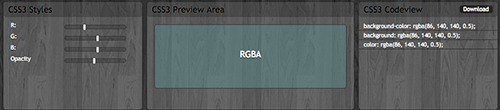 One of the great things about generating CSS3 effects is that there are many tools on the web that help shortcut the process. When adding RGBA color to a website, I turn to my favorite CSS3 resource, css3maker.com.