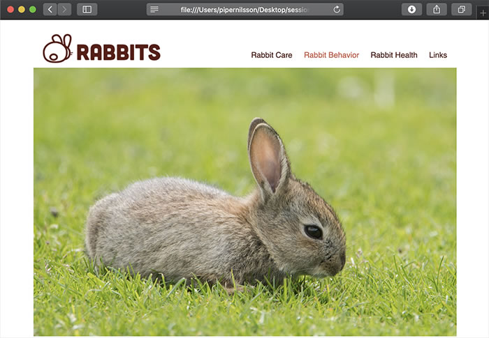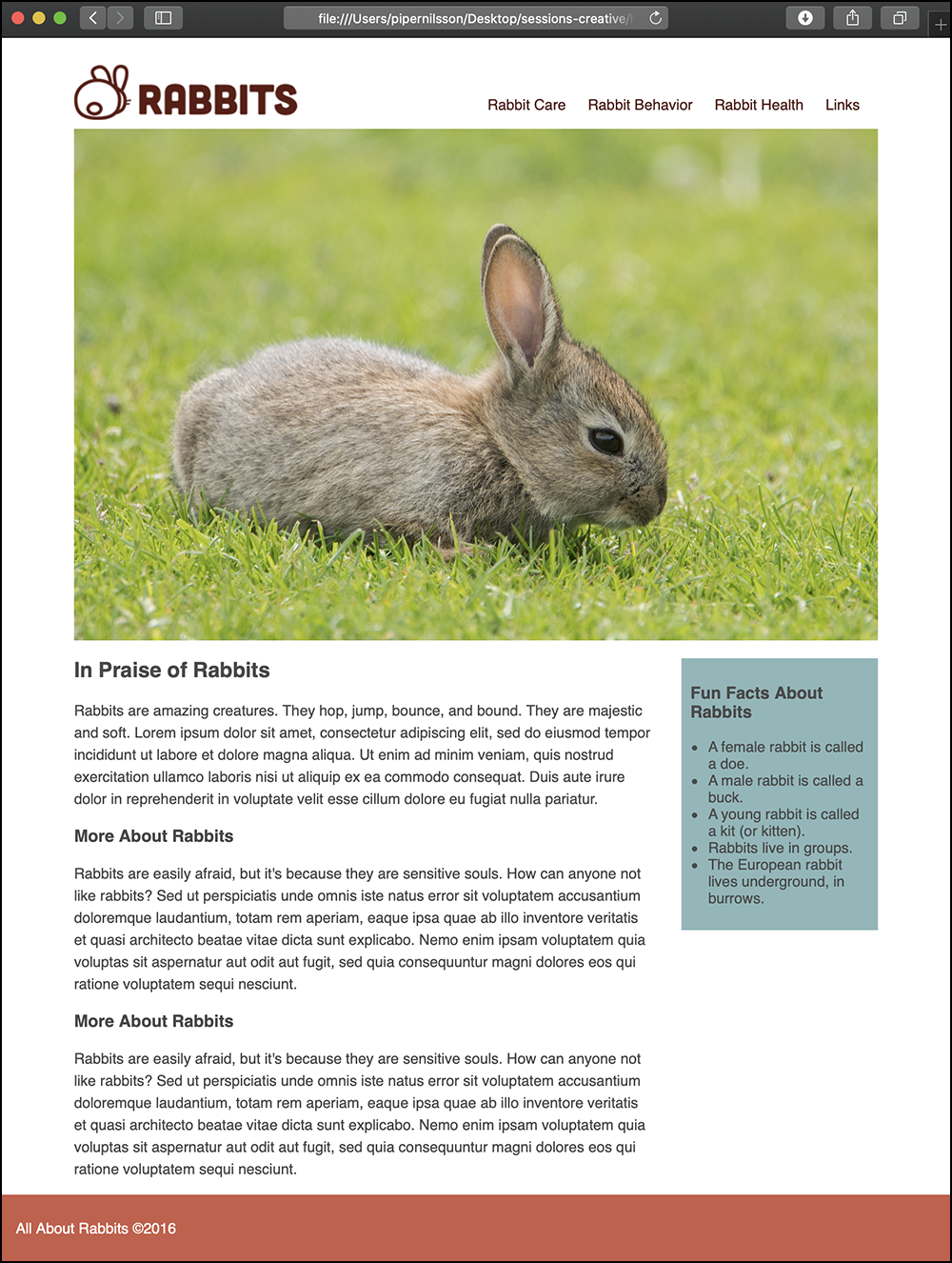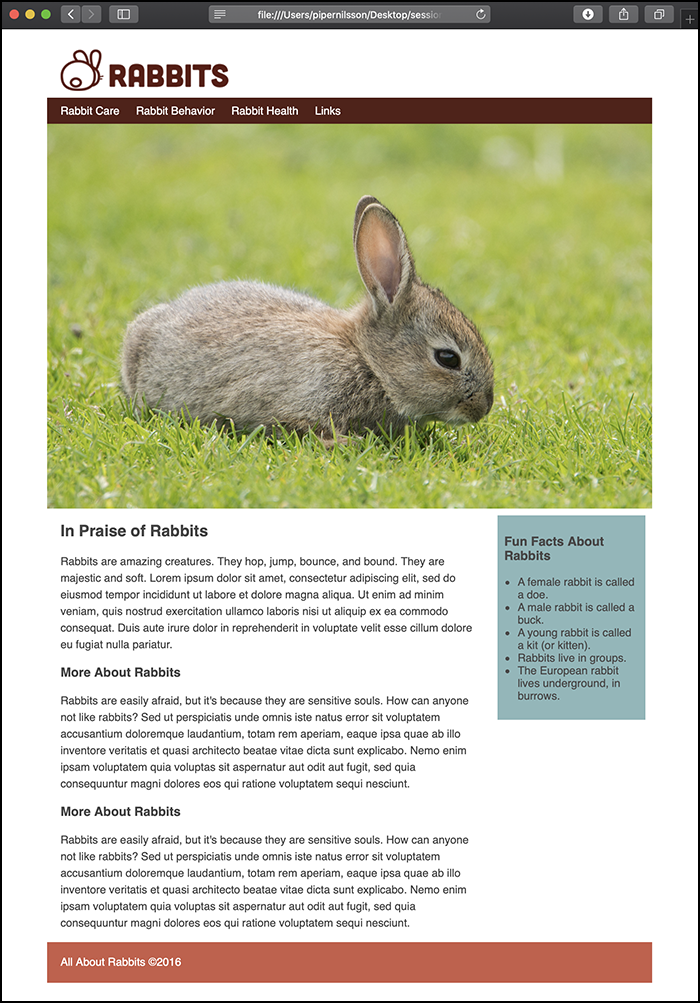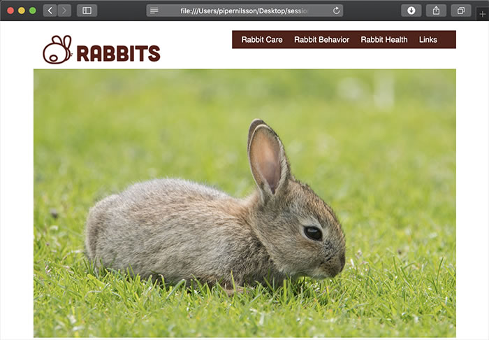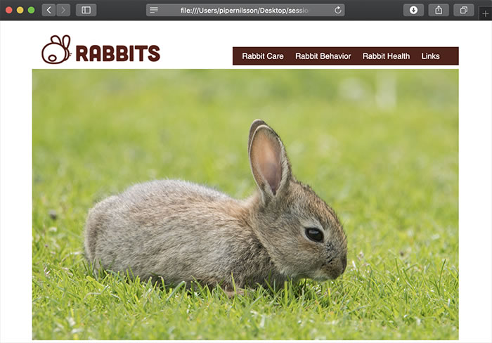 Looking at the Rabbits layout in the browser, it looks kind of boxy. The header is a rectangle, the nav bar is a rectangle, the photo is a rectangle, and so on.