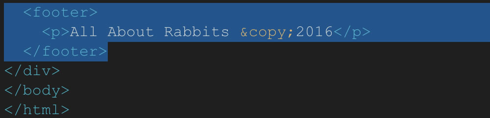 Have you ever noticed how on some websites, the footer spans the full width of the browser? To create this effect, go to the index.html source code.