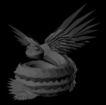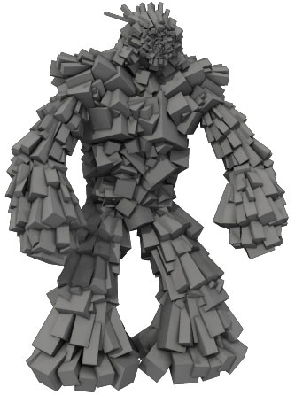| This is a crystal monster of some sort that I made for this lecture. It is made entirely out of cubes. They are just scaled, rotated, and translated into place. I used some groups to make things easier. |