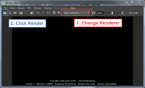 Maya defaults to the Arnold renderer now, which is way more complicated than we need right now. Swap to Maya Software by choosing it from the drop down menu.