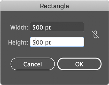 Earlier, you set your document's dimensions to 500px for width and height. As such, you need to create a square with the same dimensions. Click on the Rectangle tool and then click, just once, in the document. The settings for this tool will appear. Use the values shown below and click OK.