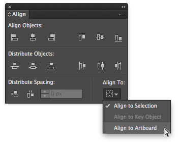 To make sure you see all the options on this panel, click a few times on the double-arrow just to the left of the Align tab or click on the panel's menu button and select Show Options.
