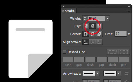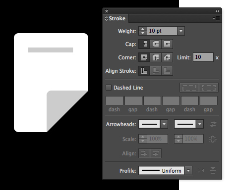 Since we have rounded corners on our corner, let's make sure the strokes are just as gentle looking. With the line selected, open the Stroke panel (Window > Stroke). Double-click the double-arrows next to the panel title to fully expand it. Set the Weight to 10 to increase the line's thickness.