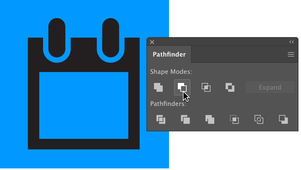 Here is the result with the Transparency Grid enabled (View > Show Transparency Grid) so you can see a hole has been made as a result of the Minus Front command. This hole will, eventually, hold the calendar date.