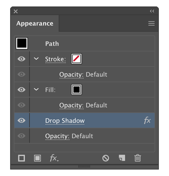 Back on the Appearance Panel, note the swatch square in the upper-left (just under the panel's name). Click and drag this onto the Graphic Styles Panel.