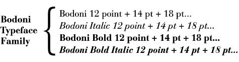 family Bodoni is made up of many related fonts, each with a specific