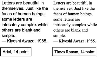 in a font. Below is an example using Arial and Times. Both faces are