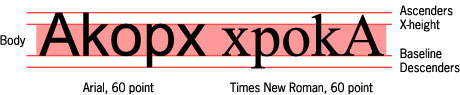 (descender) in both typefaces it would add up to 60 points. However,