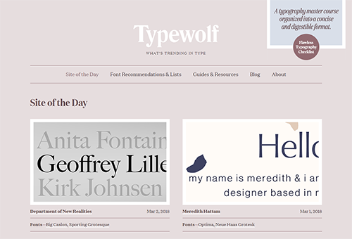 One wonderful resource is a site called Typewolf that has been run by a designer called Jeremiah Shoaf since 2013. At Typewolf, Shoaf only showcases interesting designs, pointing out the impact of type choices from a designer's perspective.