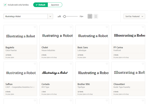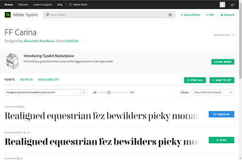 Click on the various previews to see more information about each font. A new page will open where new text can be entered to be previewed and specific styles can be synced to your account.