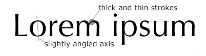 Now look at the typeface Optima, pictured below. Notice how we have a shift back to the more classical look of a serif face (but without the serifs). What features make it look more "classical"? It is called Humanist Sans because the varied weight of the strokes (from thin to thick) evokes the strokes of a calligrapher's hand, humanizing the type a bit. And, typical of many traditional serif fonts, the angle of the axis of the "o" is slightly tilted.